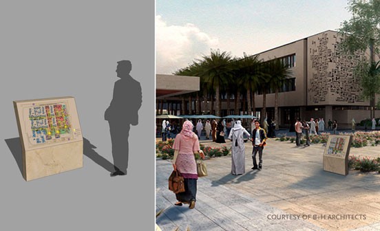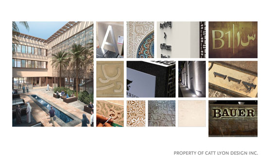 Schematic designs for site, facade and interior sign systems